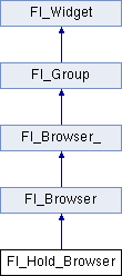 The Fl_Hold_Browser is a subclass of Fl_Browser which lets the user select a single item, or no items by clicking on the empty space. More...