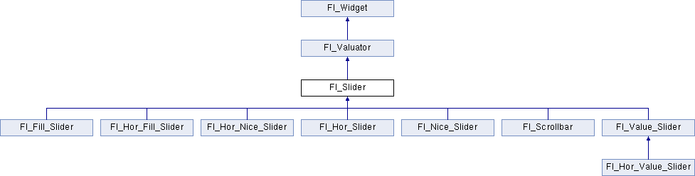 The Fl_Slider widget contains a sliding knob inside a box. More...