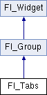 The Fl_Tabs widget is the "file card tabs" interface that allows you to put lots and lots of buttons and switches in a panel, as popularized by many toolkits. More...